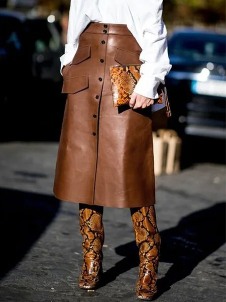 Plain Regular Fit Urban Pu Faux Leather Skirt