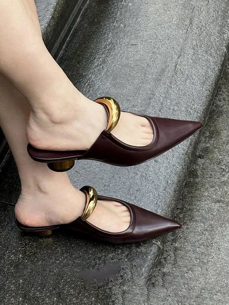 Elegant Imitation Pearl Pointed Toe Kitten Heel Mules