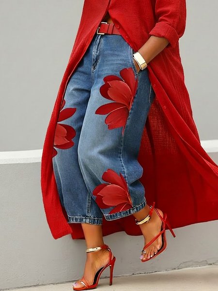 Elegant Paisley Wide Leg Pants H-Line Natural Vacation Trousers