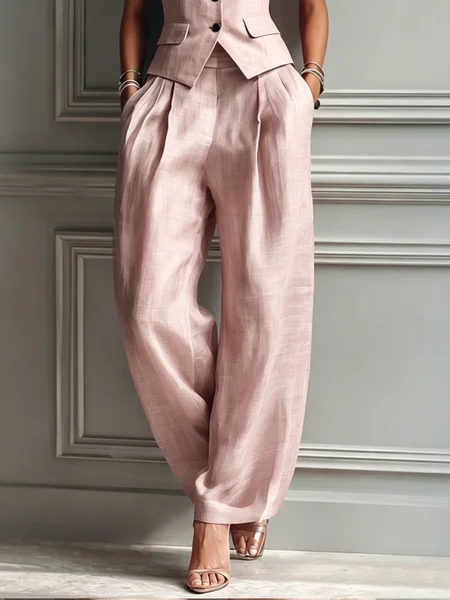 Casual Solid H-Line Straight Leg Pants