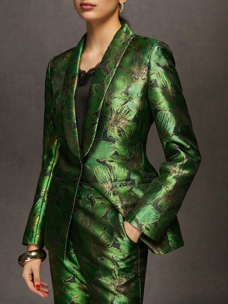 Elegant Jacquard Random Print Lapel Collar Blazer