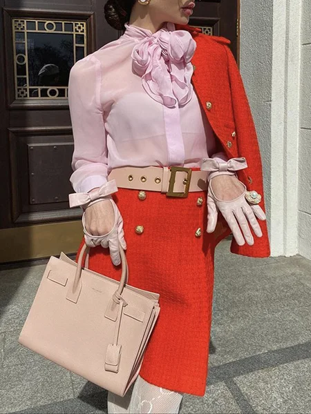 Long Sleeve Elegant Plain Regular Fit Jacket With Brooch