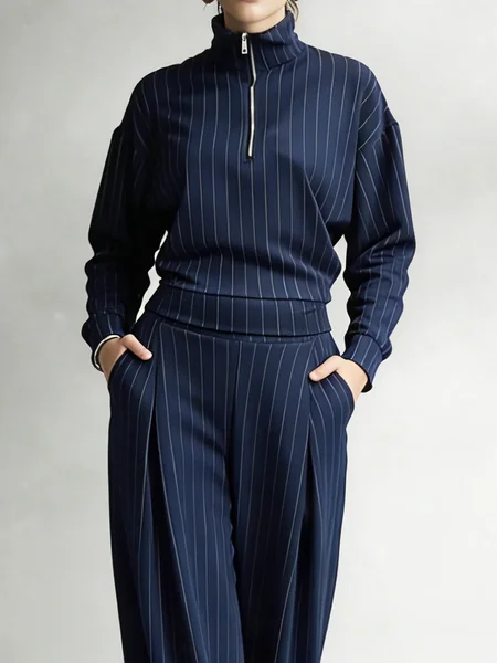 Casual Striped Mock Neck Blouse