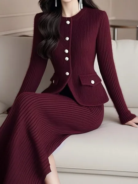 High Elasticity Crew Neck Buttoned Elegant Sweater Cardigan