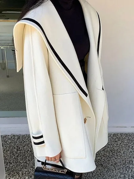 Casual Loosen Split Joint Color Block V Neck Coat No Belt