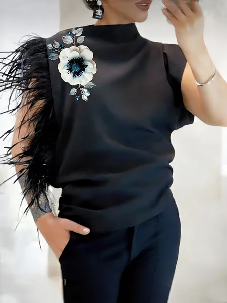 Stylewe Women Elegant High Waist Wide Leg Pants Random Print Social Spring