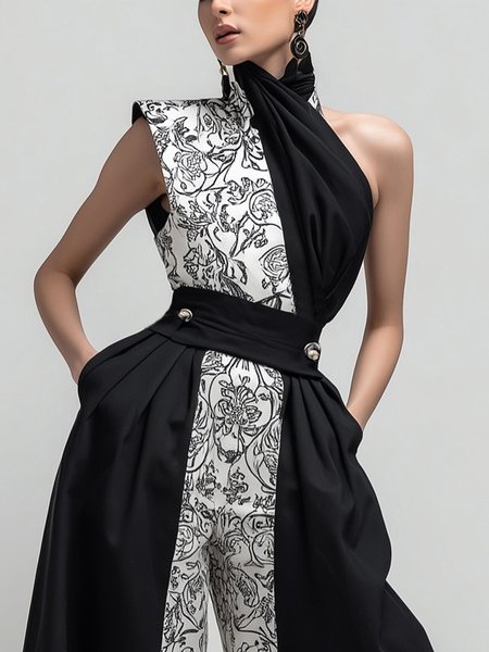 Urban Color Block Blazer X-Line Lapel Collar Commuting Jacket
