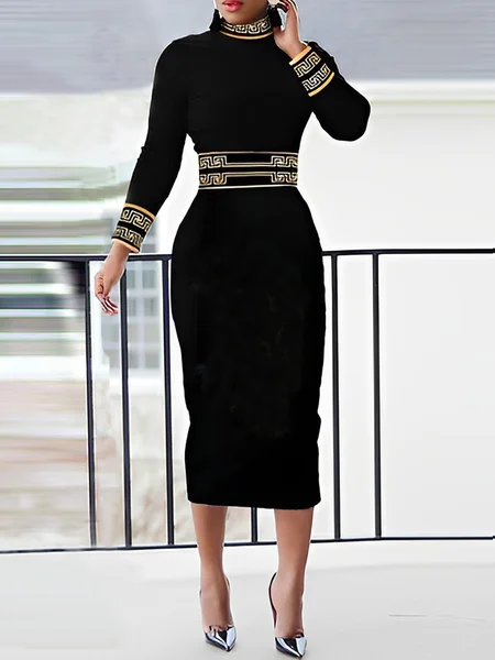 Stand Collar Elegant Print Regular Fit Dress