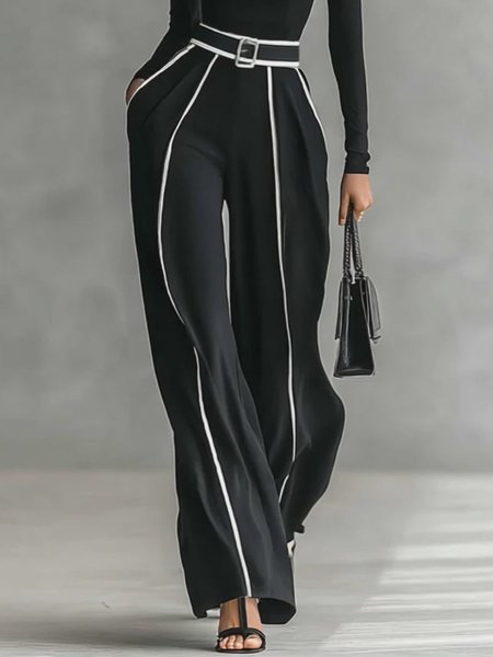 Casual Color Block Lapel Collar Sweater Cardigan With Belt