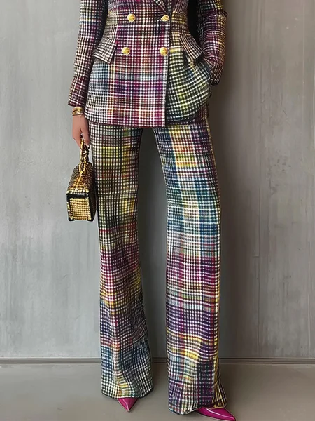 Urban Plaid Balloon-Sleeve Buckle Shirt