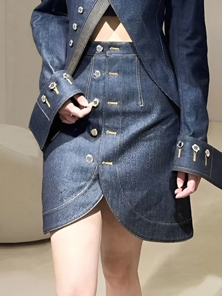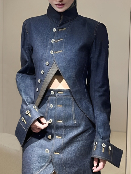 Casual Buttoned Plain Shawl Collar Denim Coat