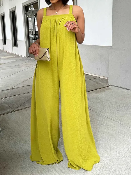 Square Neck Sleeveless Plain Loose Vacation Jumpsuit