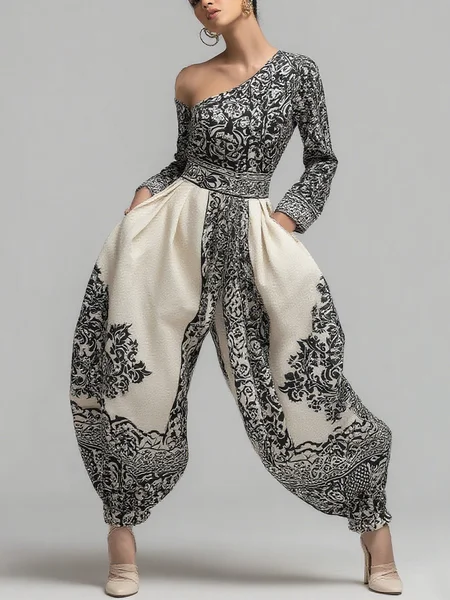 Casual Printed Asymmetrical Off-Shoulder Jumpsuit