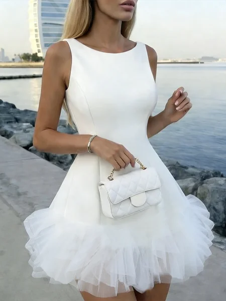 Urban Plain Crew Neck Mini Dress