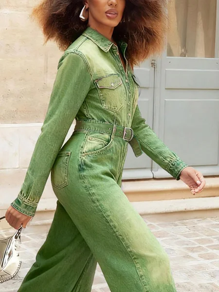 Denim Casual Plain Distressing Shirt Collar Shirt