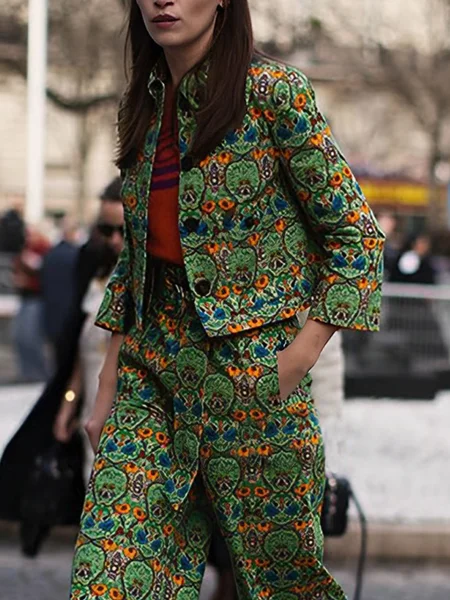 Elegant Buttoned Herringbone Stand Collar Jacket