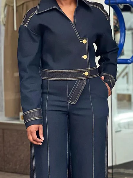 Velvet Lapel Collar Plain Urban Buttoned Blazer
