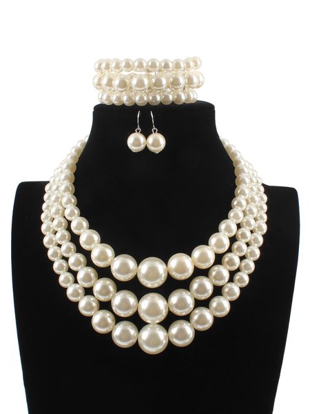 3pcs/set Elegant Imitation Pearl Multilayer Necklace Party Jewelry Set