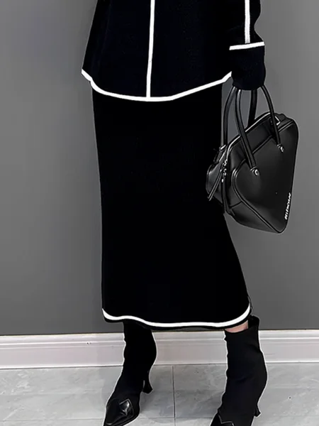 Plus Size Color Block Casual Sweater Skirt