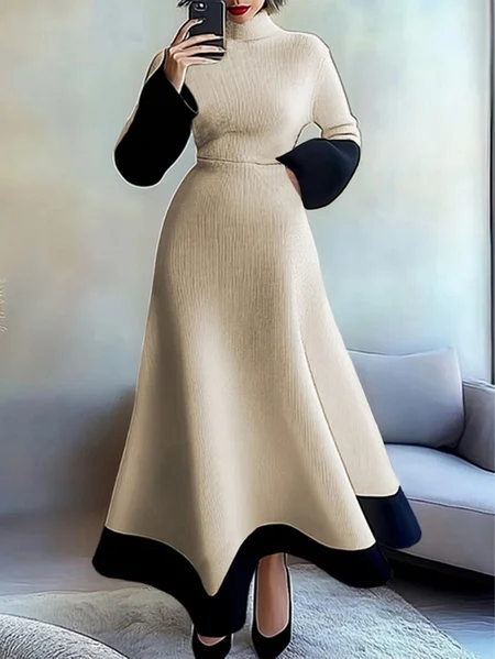 Plus Size Color Block Turtleneck Elegant Sweater Dress