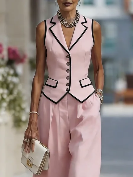 Urban Hot Drilling Color Block Lapel Collar Vest