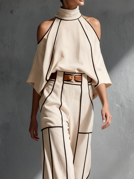Casual Color Block Stand Collar Blouse