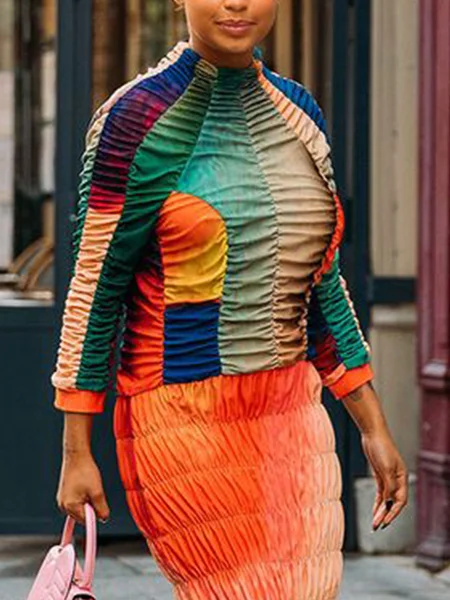 Micro-Elasticity Color Block Regular Sleeve Long Sleeve Urban Blouse