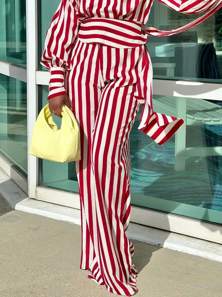 Striped Urban Regular Fit Fashion Wide Leg Pants
