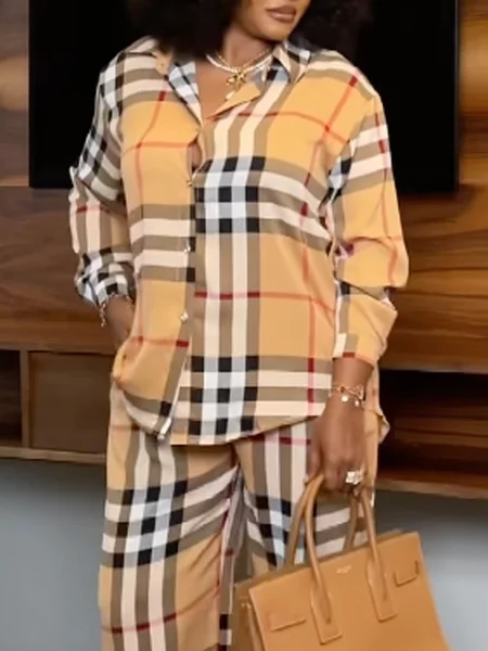 Casual Long Sleeve Loose Shirt Collar Plaid Shirt