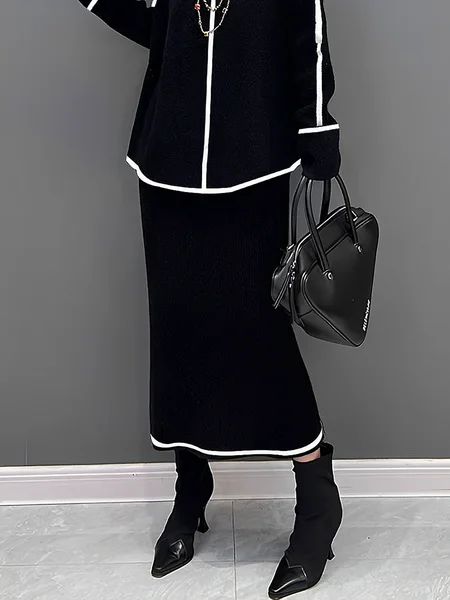 High Elasticity Casual Color Block Midi Sweater Skirt
