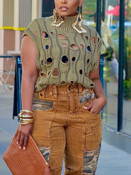 Long Sleeve Plain Urban Turtleneck Loose Sweater