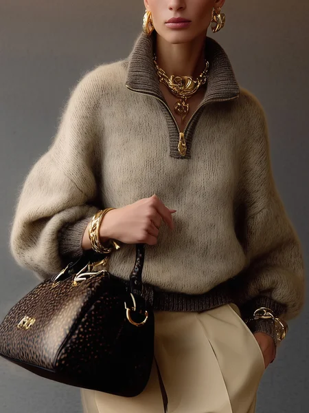 Urban Colorblock Zip-Up Mock Neck Raglan Sweater