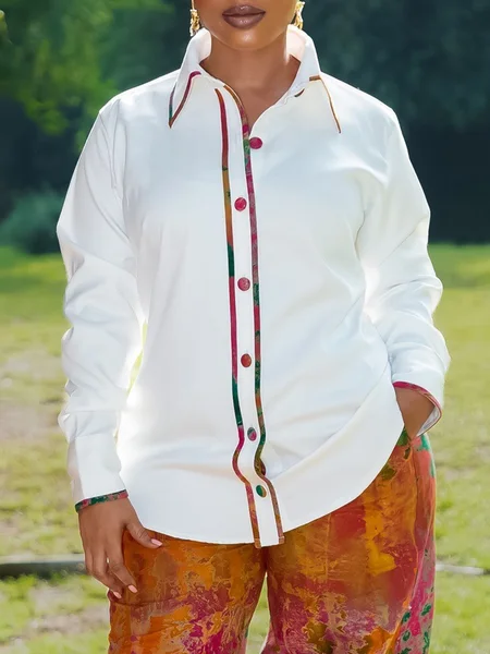 Cotton Urban Color Block Piping Shirt Collar Shirt