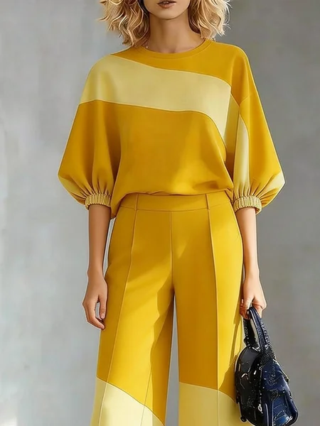 Urban Plain Split Joint Stand Collar Puff Sleeve Shirt