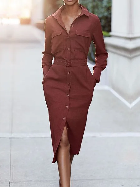 Urban Regular Fit Long sleeve Shirt Dress With Belt