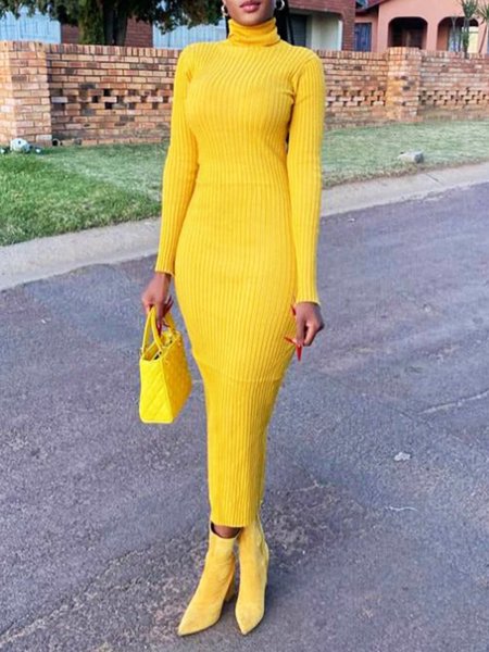 Urban Plain Turtleneck Long Sleeve Sweater Dress