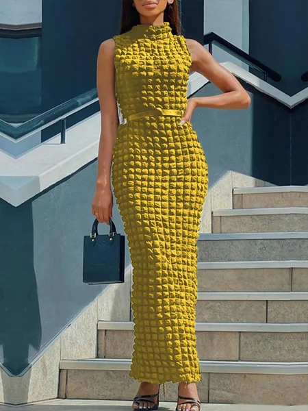 Urban Plain Stand Collar Regular Fit Sleeveless Dress